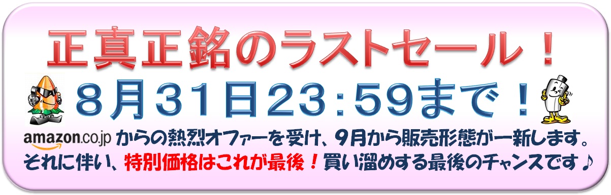| 正真正銘のラストセール! 終了しました。 | ||||||